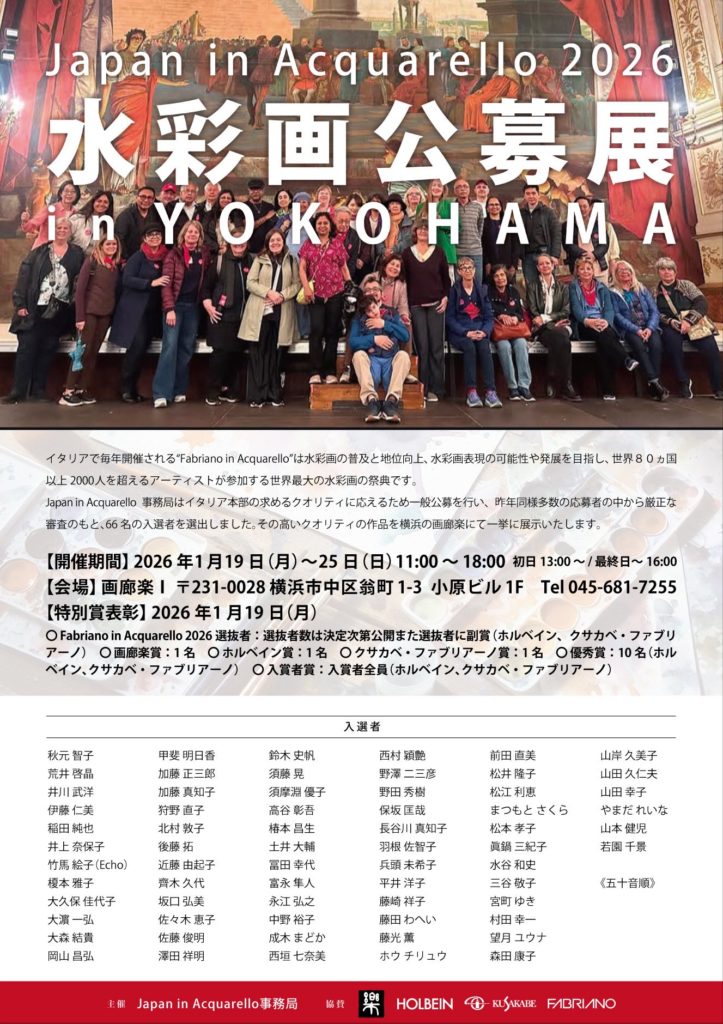 当教室の主宰 若園千景が2025年度、イタリアで開催されるFabriano in Acquarello2025に出展する日本代表として選ばれました。